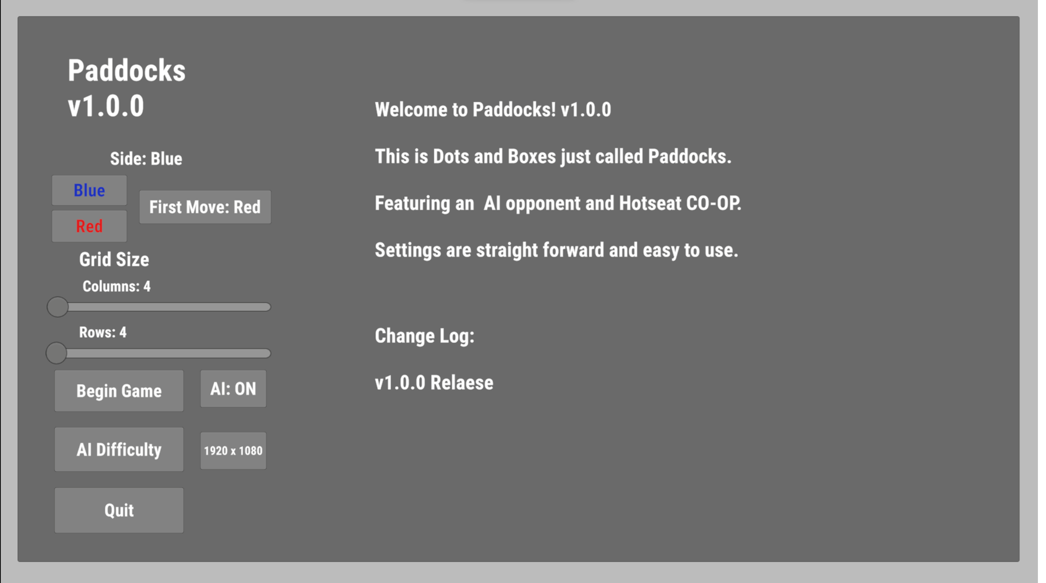 - Multiple AI difficulties + custom tuning
